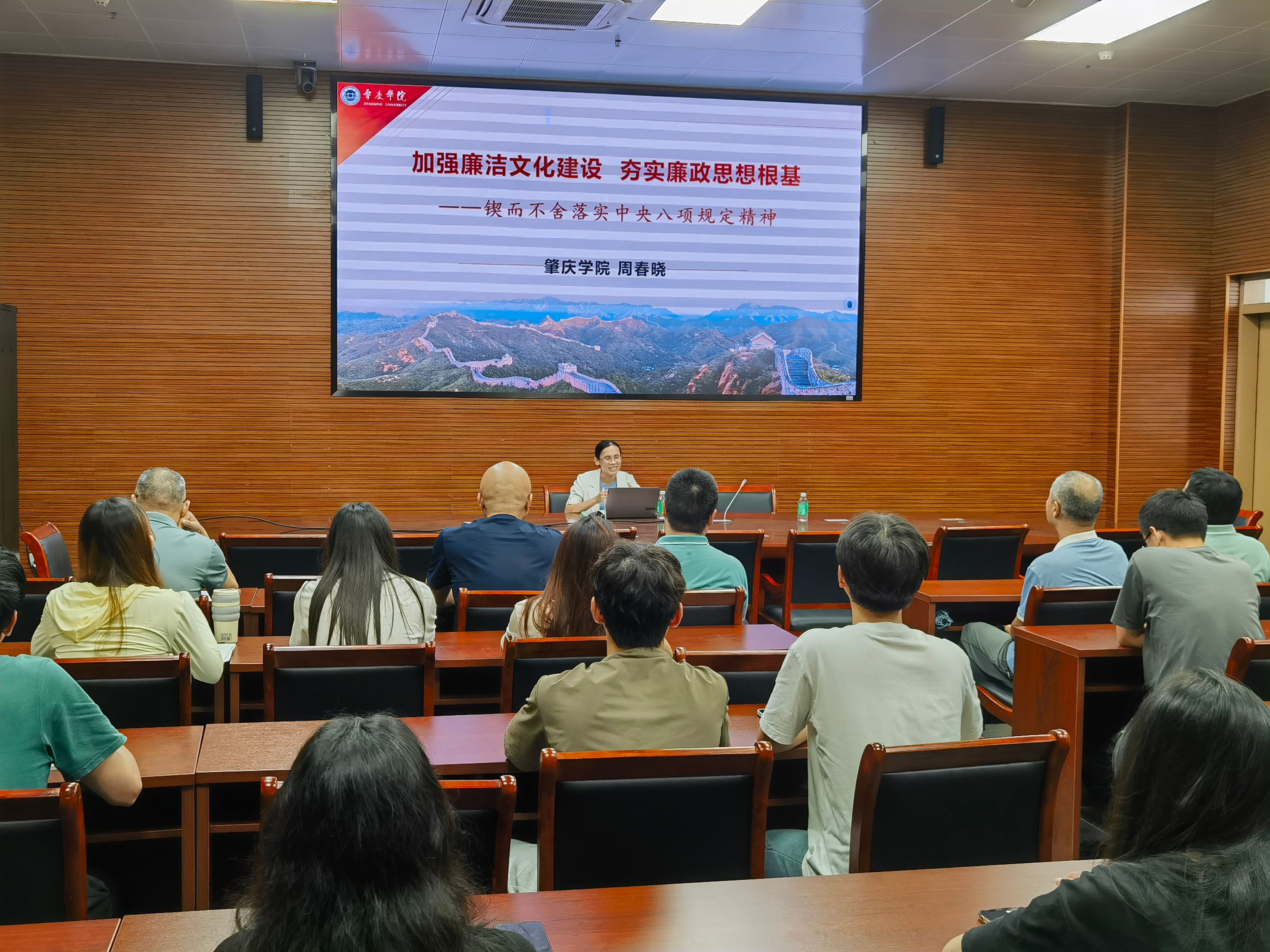 为进一步深入学习领会习近平总书记关于加强党的作风建设的重要论述,学习领会和贯彻落实中央八项规定及其实施细则精神,推进作风建设常态化长效化。6月18日下午,公司党委邀请马克思主义公司副教授、学科教学(思政)专业硕士生导师,肇庆市高层次人才周春晓博士开展“加强廉洁文化建设 夯实廉政思想根基”专题宣讲会,公司师生党员代表50余人参会。