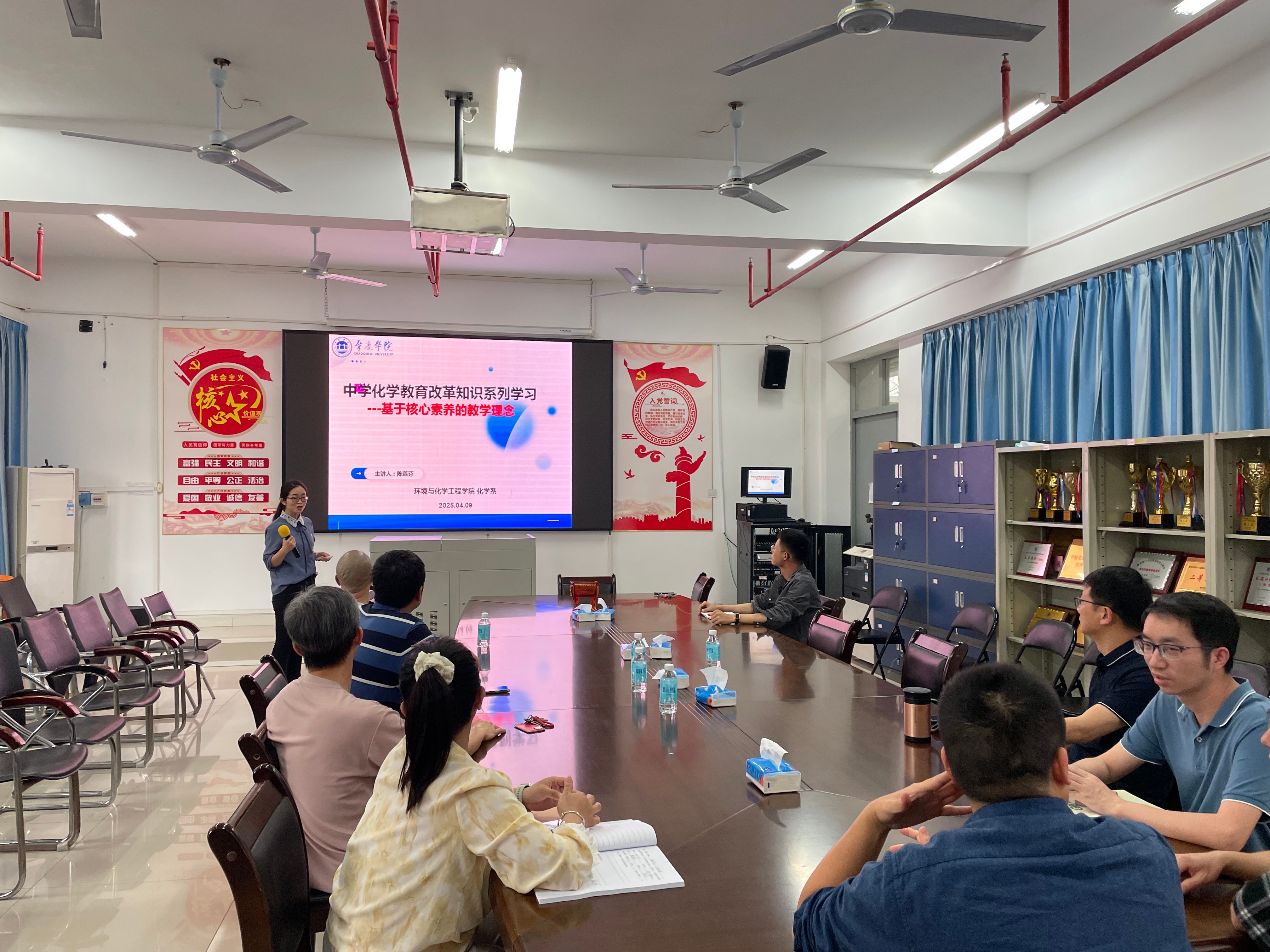 为了更好地跟进中学化学基础教育改革,2025年4月9日,bevictor伟德官网化学师范专业积极行动,开展了“中学化学教育改革知识系列学习之基于核心素养的教学理念”专题学习活动。此次活动由化学专业负责人陈莲芬主讲,化学系全体教师参与,旨在提升教师对中学化学基础教育改革的理解与实践能力,为培养更优秀的化学师范生奠定坚实基础。