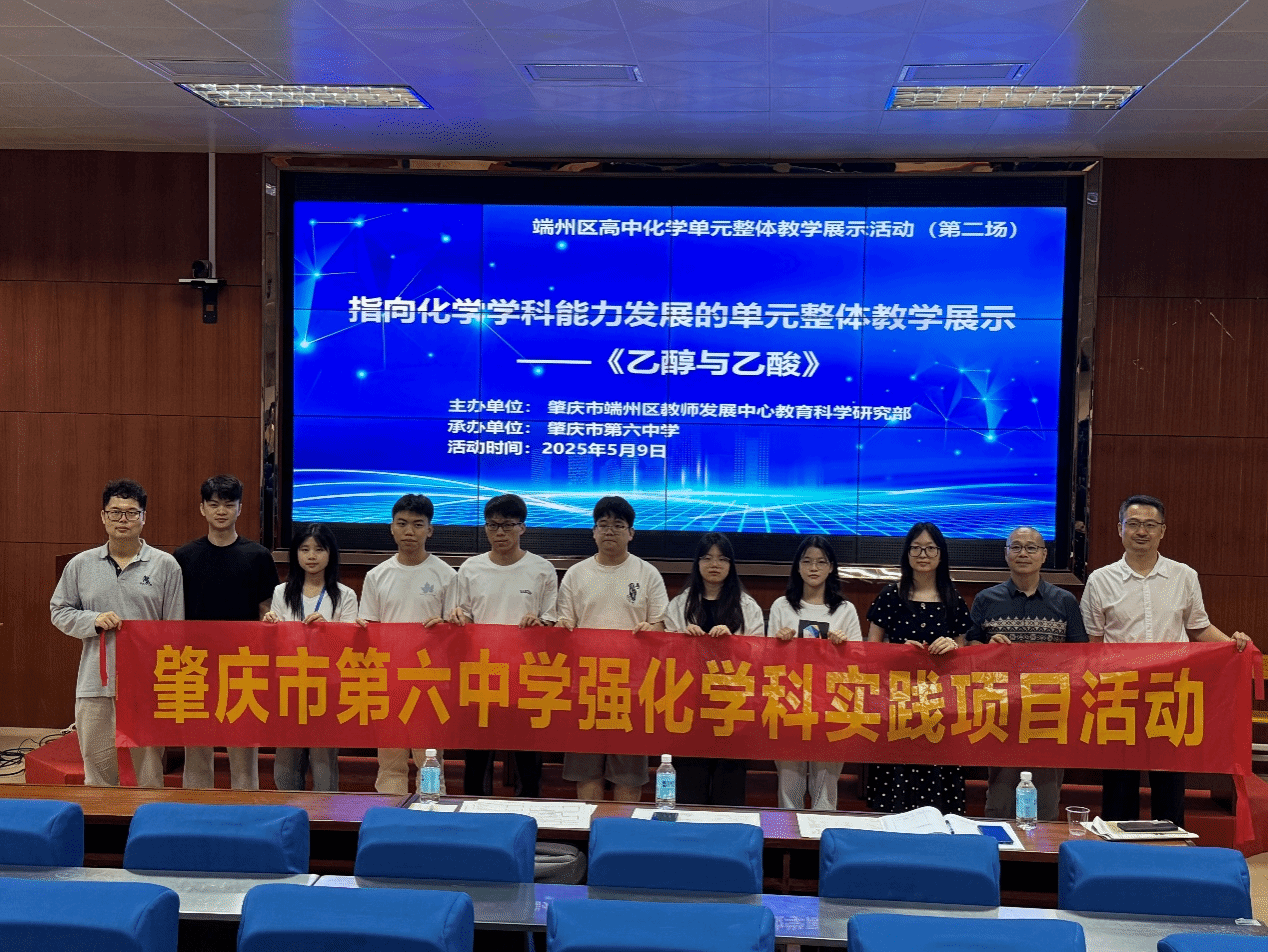 为深化高校与基础教育协同育人机制,推动化学学科教学创新,5月9日上午,bevictor伟德官网教师王赵志、黄理渊前往肇庆第六中学,参加端州区高中化学单元整体教学展示活动,与端州区教师发展中心主任叶鹏及一线教师深入交流,并观摩了公司实习生曾语同学的公开课《乙醇与乙酸》,共话教育实践与师范生培养。