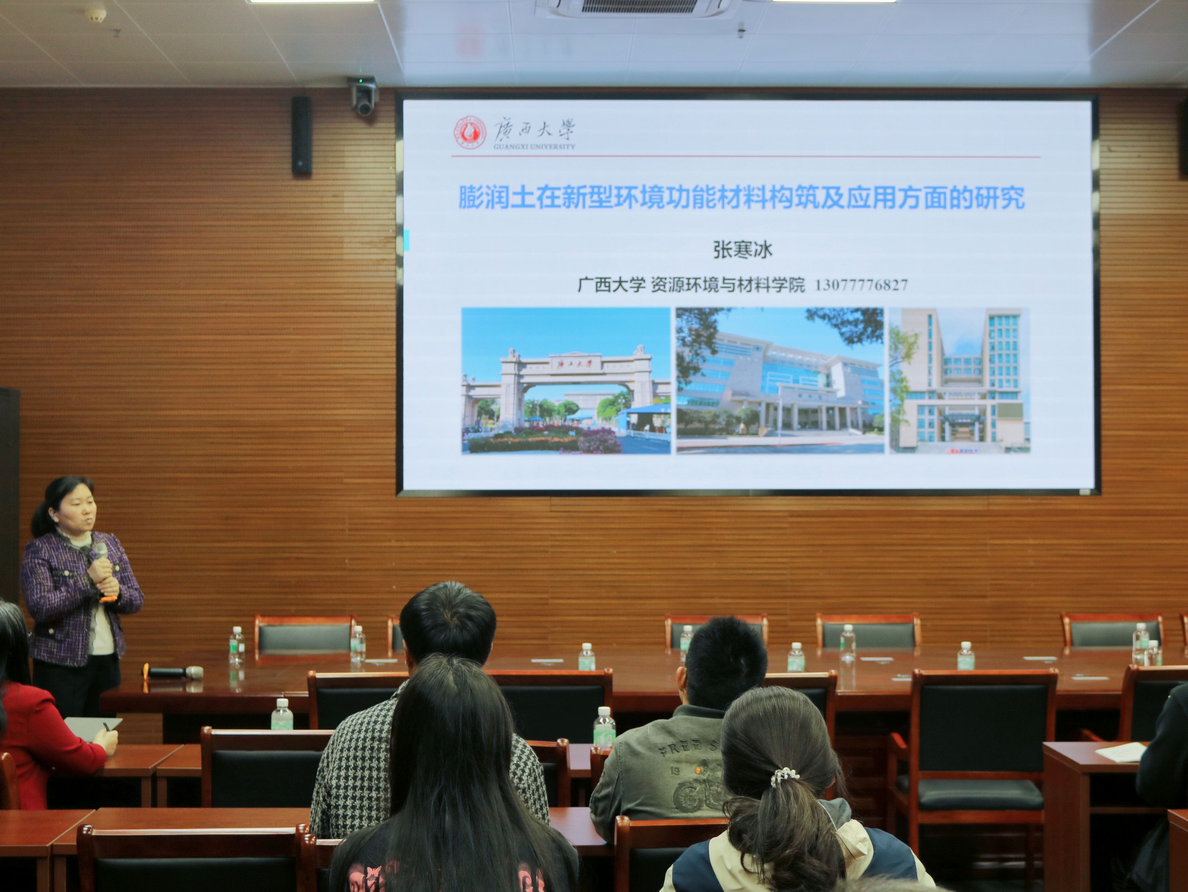 2025年3月19日下午,广西大学资源环境与材料公司张寒冰教授应邀作专题讲座。张寒冰教授长期从事新型催化、吸附及光热催化材料的开发及三废处理应用等科研工作,主持多个国家级、广西壮族自治区级科研项目,2022年获广西自然科学奖二等奖。本次讲座聚焦膨润土新材料的研究背景、功能构建及其在催化材料、凝胶强化等领域的应用。