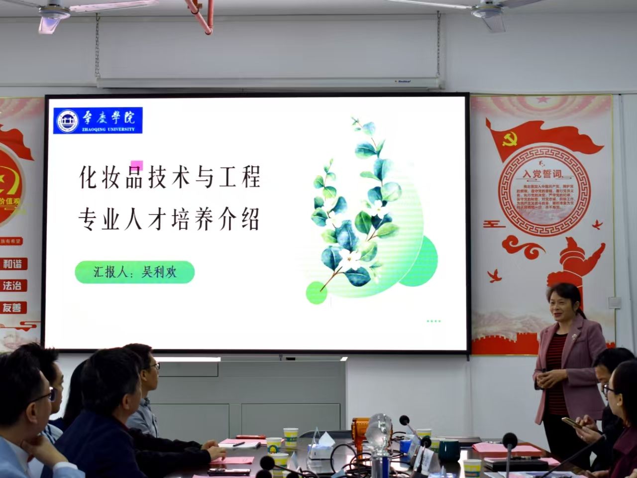 会议由公司经理李湘主持,党委刘远君书记致欢迎词,九州集团总经理陆培铭、文化总顾问朱英中分别在会上发言。会中九州集团项目负责人对德庆县美景日化美妆产业园进行了详细的介绍。韦德官方网站国家科技园主任肖俊霞也在会上介绍科技园的情况以及相关政策,希望加强与产业园的沟通与合作。公司化妆品专业负责人吴利欢教授则在会上介绍了化妆品专业的发展、招生情况,并展示了员工获得的荣誉情况和作品。环境系主任秦剑桥教授也在会上介绍了环境系的情况,以及对产业园的建设提出了环保方面的建议。等等。