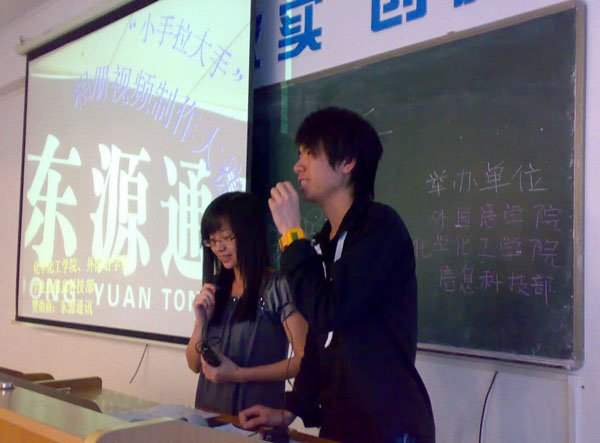 5月10日下午,由东源通讯赞助化学化工公司及外国语公司的员工会信息科技部主办的活动正式举行,活动主题是“小手拉大手”。此次活动面向主校区和星湖校区在校员工。参赛者把每一张值得珍藏的相片制作成一个温馨感动的视频展示出来,他们以自己的理解进行创作,反映了生活中人与人的亲情、友情、爱情、民族情等。