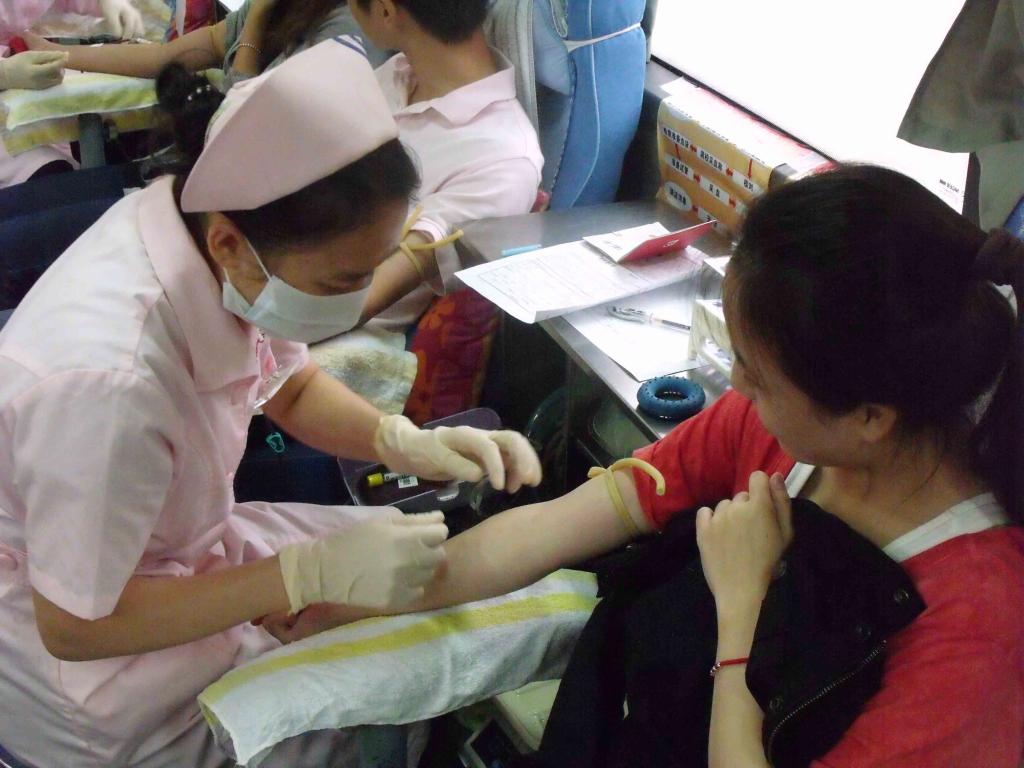 活动刚开始,同学们就已拿着填好的全血献血登记表,整齐地排着队进行献血前的各项检查。测体重、量血压、验血等各项健康检查过后,同学们面带微笑、勇敢坚定地走上了停靠在旁边的献血车,无偿献出自己的血液,奉献爱心,汲他人所需。