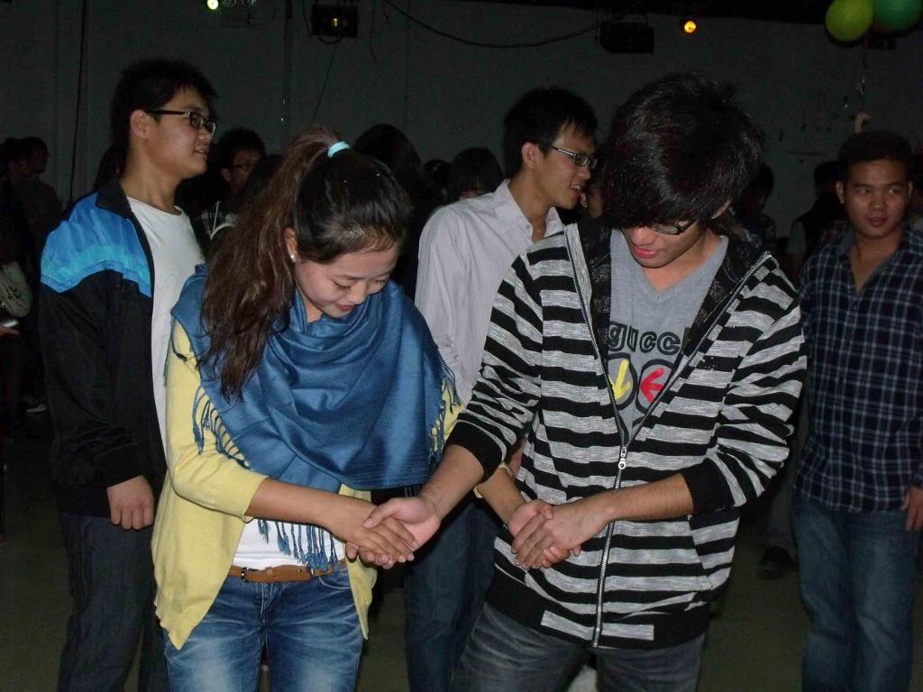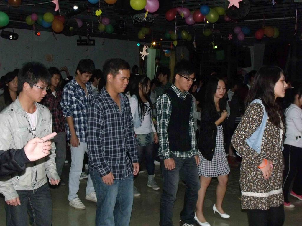 舞会中,十二星座舞者伴着悠扬的歌声为同学们表演了精彩的交谊舞,优美的姿态赢得了观众们的阵阵掌声。他们激情的舞姿同时点燃了同学们的热情。在紧接着的共同起舞环节,现场的同学更是欢快地自由组合,并积极地向工作人员学习十六步,大家共同学习、共同起舞的热情让每位同学绽放了青春的活力。接着,在主持人的带领下,同学们排成一条长队跳起了兔子舞,动感的节奏,投入的舞动,快乐的欢呼将舞会现场推向了高潮。最后,舞会在大家的尽情放松下圆满地结束。