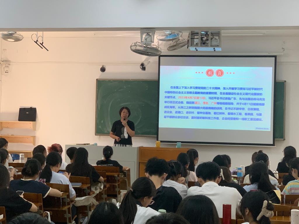 9月19日上午,公司经理郝向英以《牢记嘱托 不辱使命 铭记厚爱 感恩奋进》为题,向2021级化学专业员工讲授“思政第一课”。郝向英以习近平总书记四次考察广东的足迹和嘱托为主线,重点围绕“习近平总书记视察广东的重大意义;习近平总书记视察广东重要讲话、重要指示的精神实质和丰富内涵;以习近平总书记重要讲话、重要指示精神为根本遵循,奋力在推进中国式现代化建设中走在前列”等三部分内容讲授课程。郝向英讲到,近年来,广东在努力实现高水平科技自立自强上取得了重要进展,已经成长为国家重要创新动力源。她鼓励在场的同学们,要认真做好学习生涯及人生规划,刻苦求学、迎难而上,迎接好新征程上的机遇与挑战,以实际行动践行为国为民的初心和使命,成长为有情怀、有视野,勤思考、善学习的复合型人才。