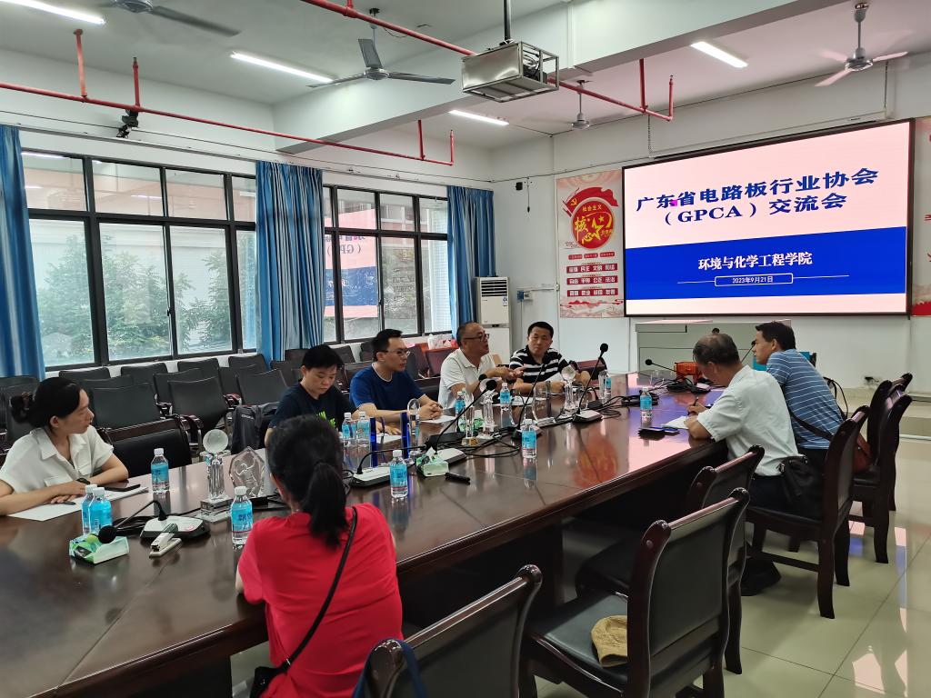 9月21日下午,广东省电路板行业协会(GPCA)副秘书长陈世荣一行来到公司开展产学研合作交流,公司副经理吴贤格同环境系骨干教师秦建桥、黄崇辅、郑旭惠、戴敏等教师代表参加了此次交流会。