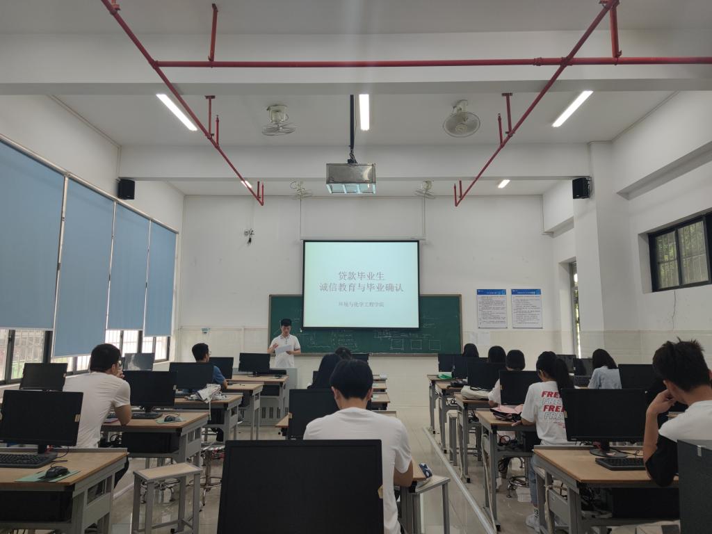 为加强高校助学贷款毕业生树立诚实守信的观念、自觉履行还款义务,同时帮助毕业生明确还款流程,bevictor伟德官网于5月11日上午在理工大楼104实验室召开了2021届贷款毕业生诚信教育宣讲会。2021届全体贷款毕业生(20人)参加了会议,会议由辅导员严锡秋主持。